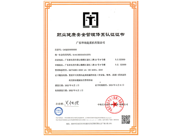 职业健康安全管理体系认证证书(中文版)