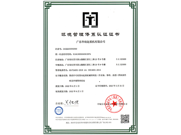 环境管理体系认证证书(中文版)
